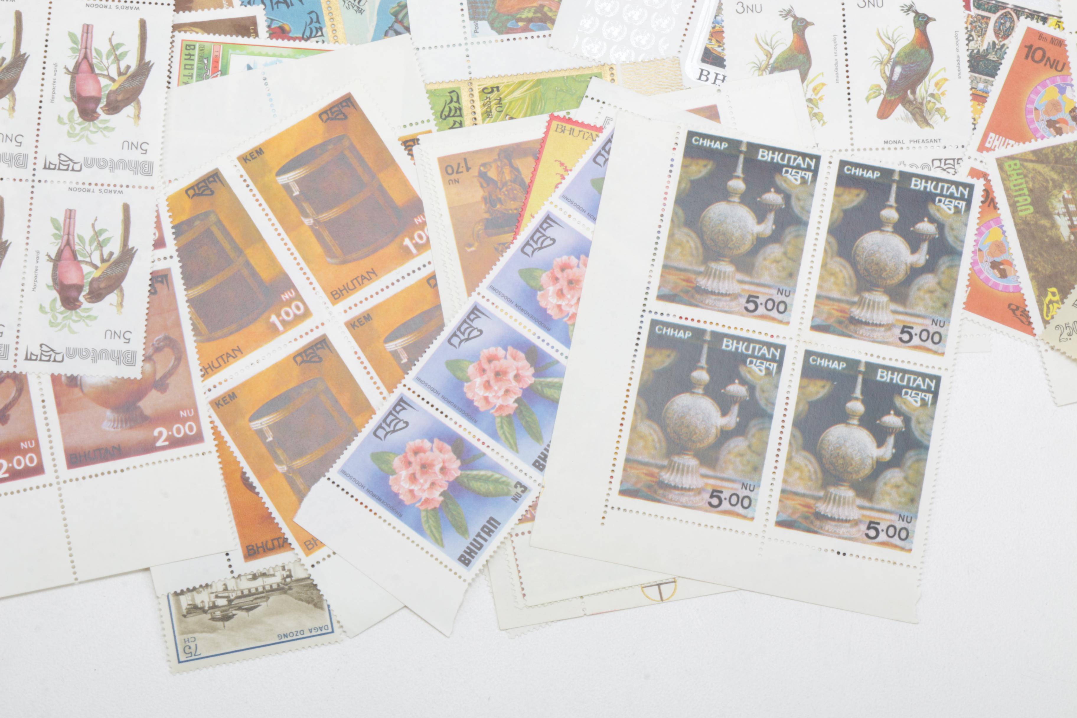 Bhutan Tibetan Embossed Foil and Pictorial Stamp Collection EBTH